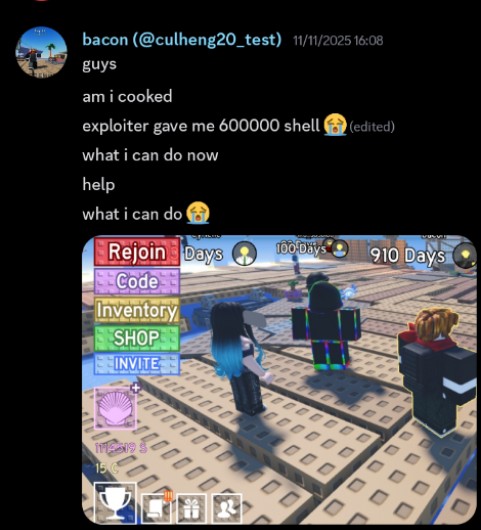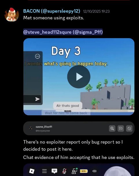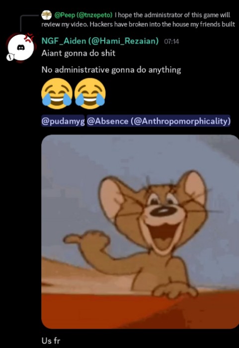 The videos below are provided by a random player called Peep. These contains terms violation evidence of some other players. I suspect the first one is the lead of the glitched servers.